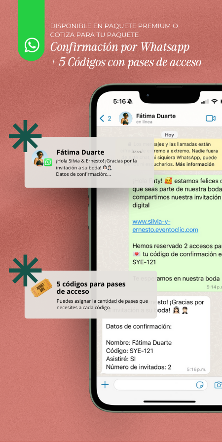 Confirmación de asistencia por Whatsapp (2 teléfonos)
